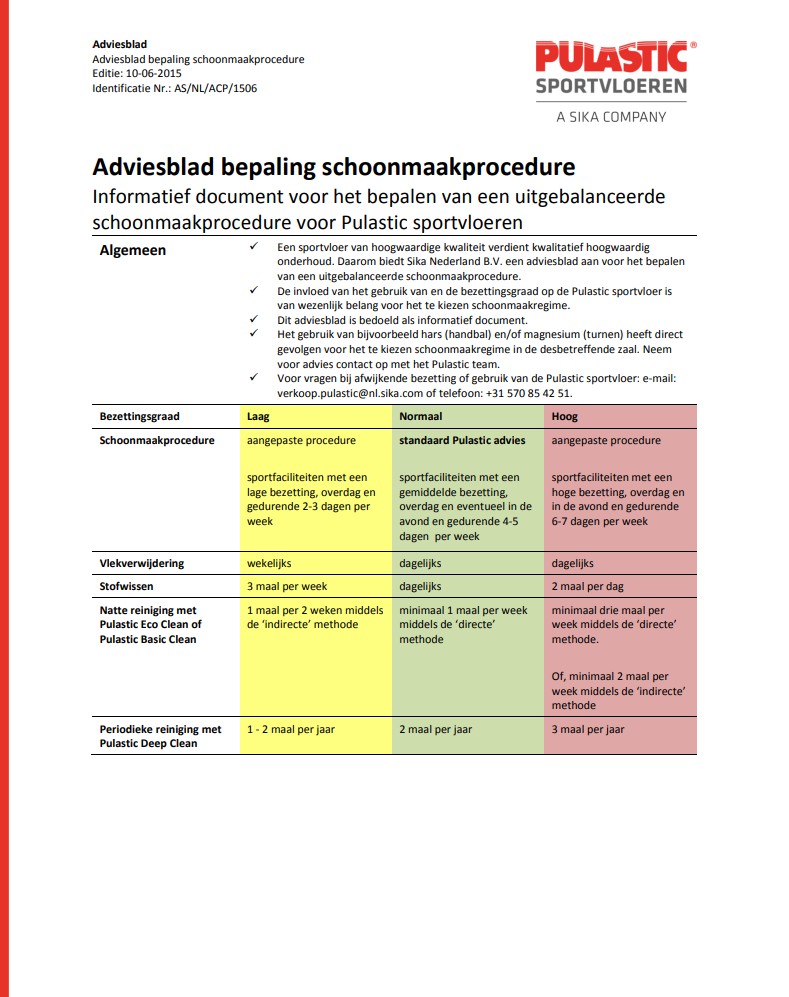 Bijlage j Schoonmaakadvies Pulastic sportvloerDOC